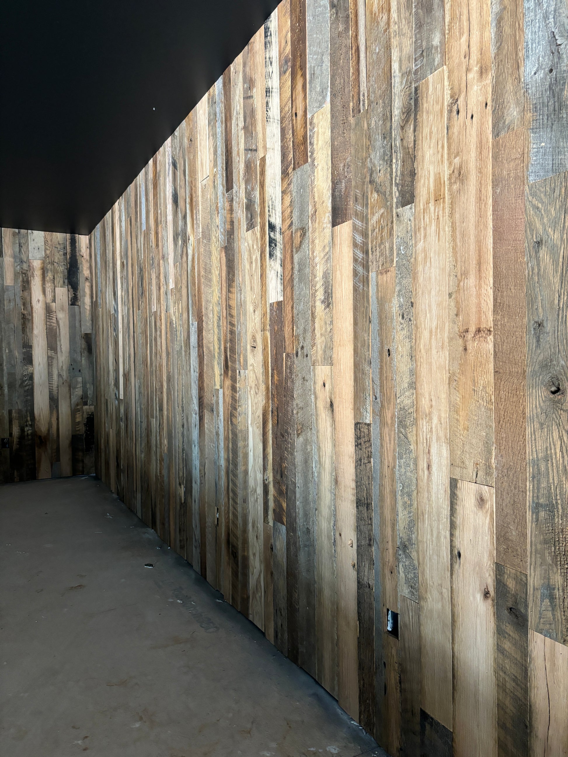 All 1/2" thick reclaimed wood material is a hardwood mixture that is reclaimed from 100+ year-old mills, warehouses, factories, barns, and thoroughbred farms or racetracks. This material is a mixture of 18"-12' cuts for easy installation.