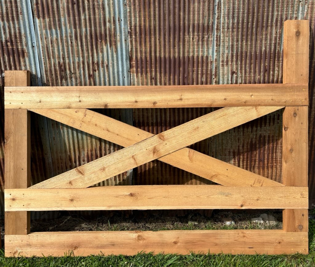 The gates are natural and unfinished rough sawn eastern red cedar unless requested otherwise. Cedar naturally has a protective oil in it.